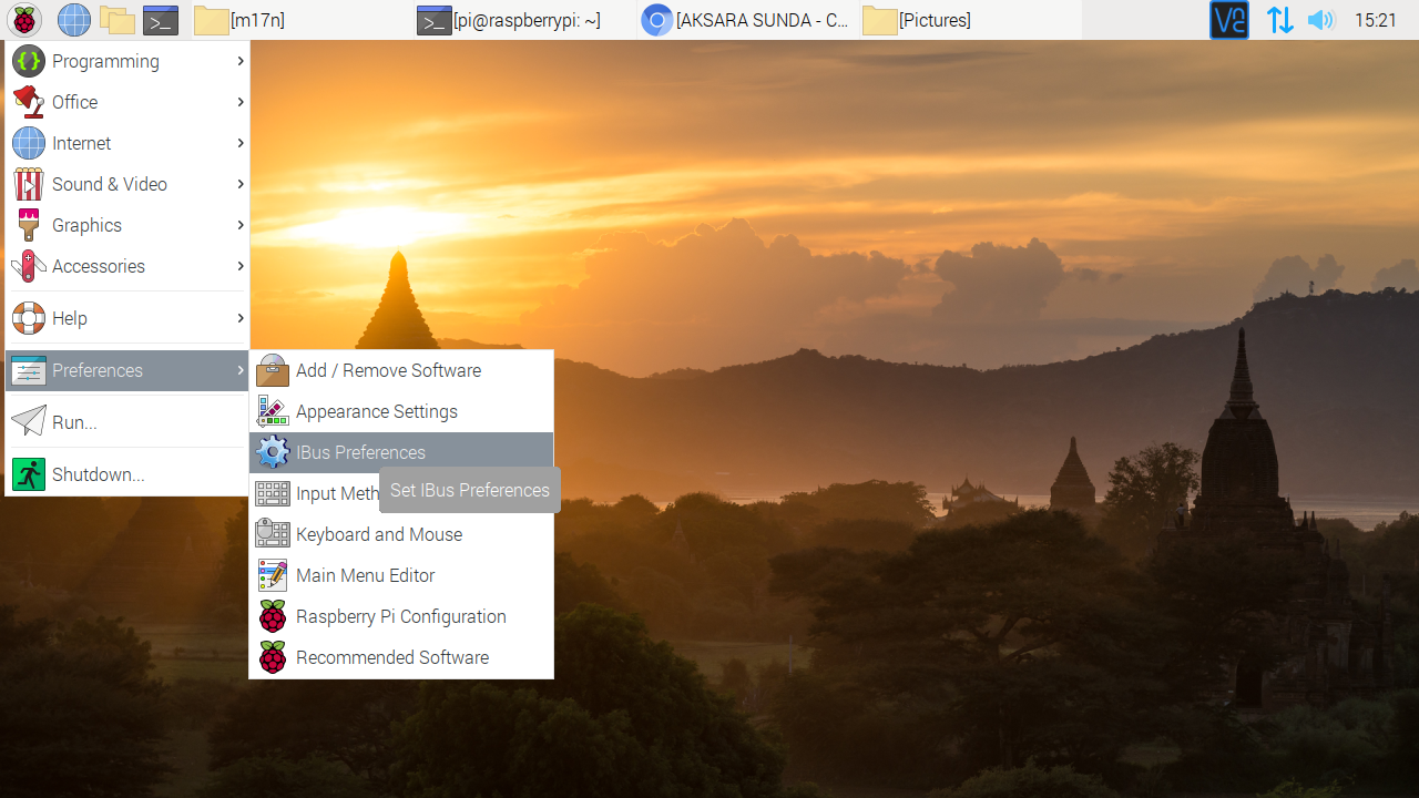 Selanjutnya setting iBus Preferences, pilih menu Preferences > iBus Preferences