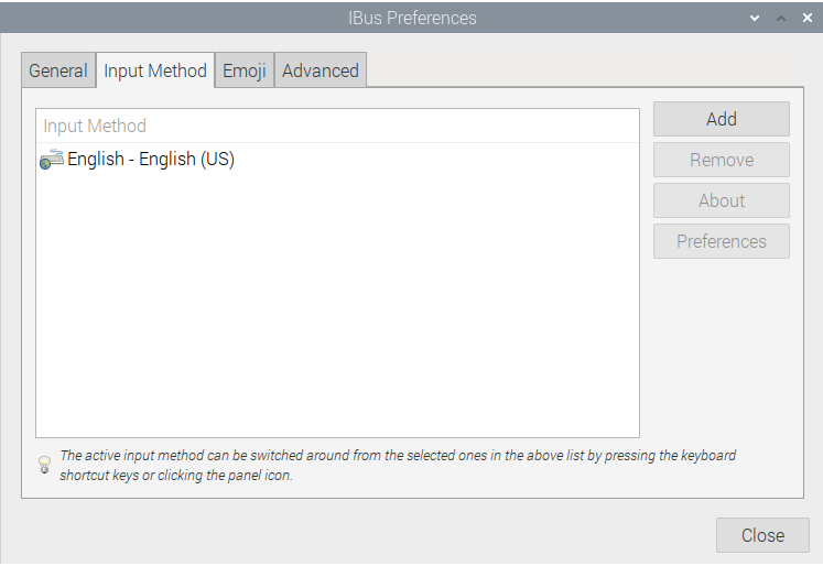 Selanjutnya pilih tab Input Method pada menu iBus Preferences