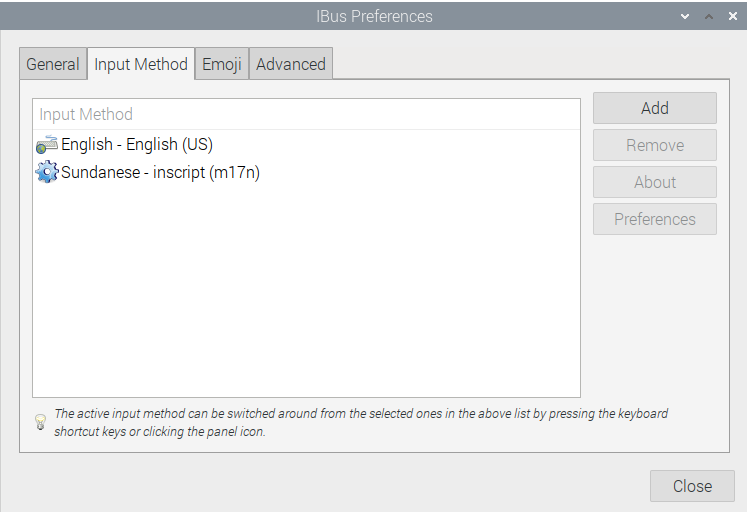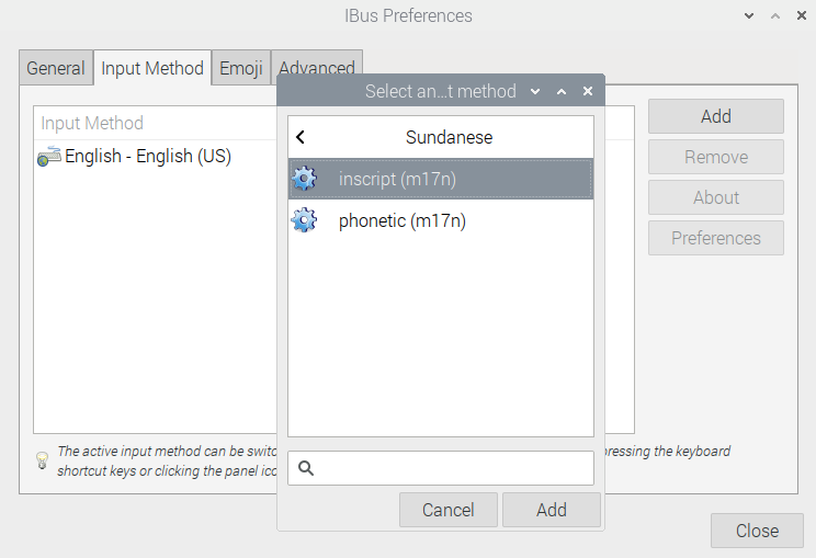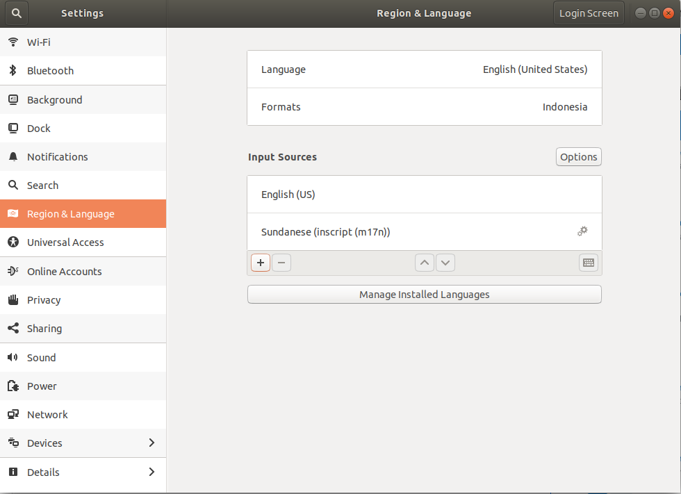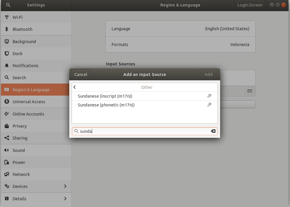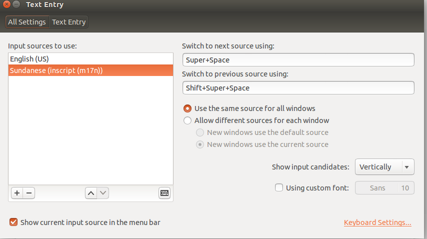 Berikut ini tampilan Input Sources jika berhasil ditambahkan Sundanese