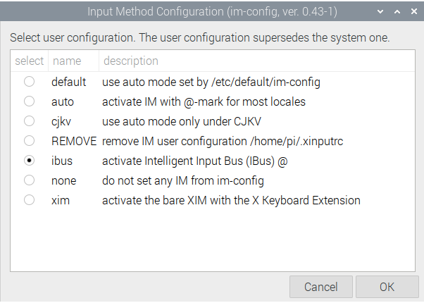 Pilih iBus pada Setting Input Method Configuration