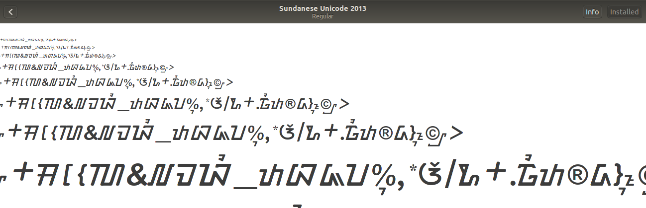 Pada menu Font Viewer ketikan "sunda", jika font sundanse sudah ada maka proses instalasi font berhasil
