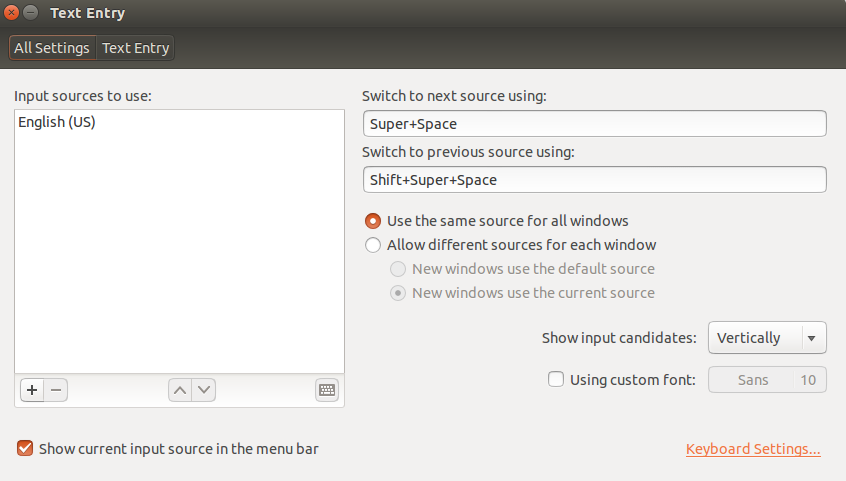 Berikut ini tampilan Input Sources jika berhasil ditambahkan