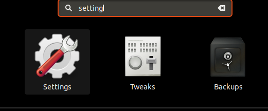 Dari menu dash pencarian ketik "setting" dan pilih menu Settings