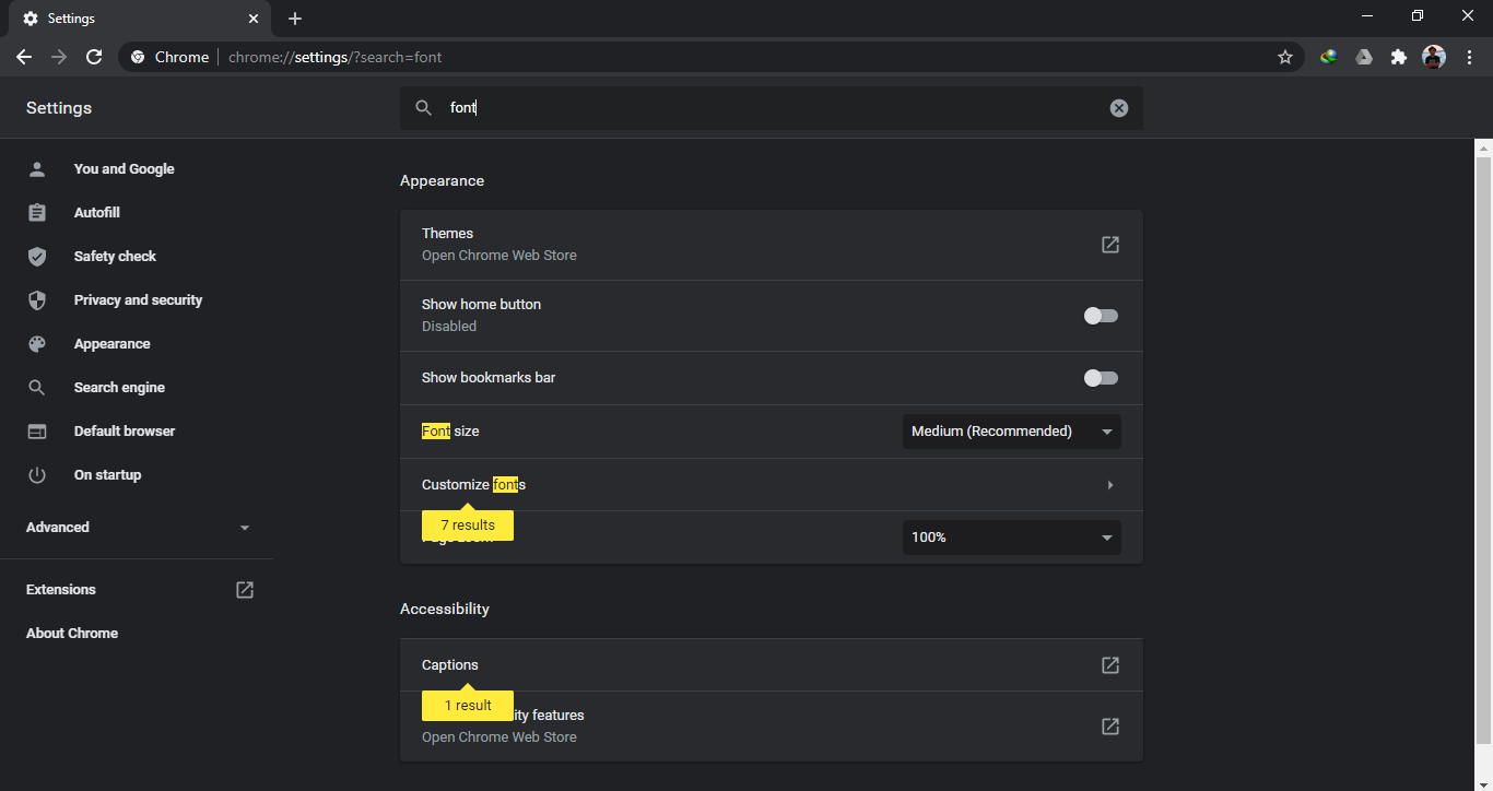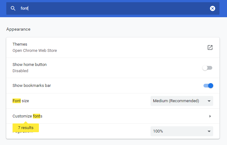 Cari pengaturan font, pilih customize font.
