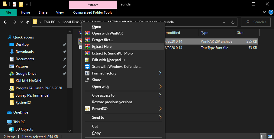 Pertama-tama ekstrak Driver Aksara Sunda yang telah di-download