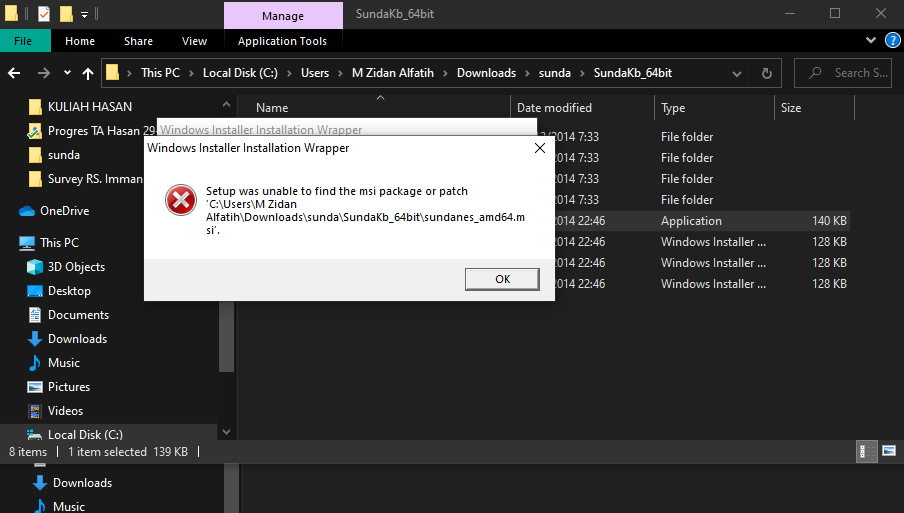 Jika proses instalasi Driver Aksara Sunda muncul pesan error seperti gambar ini,
