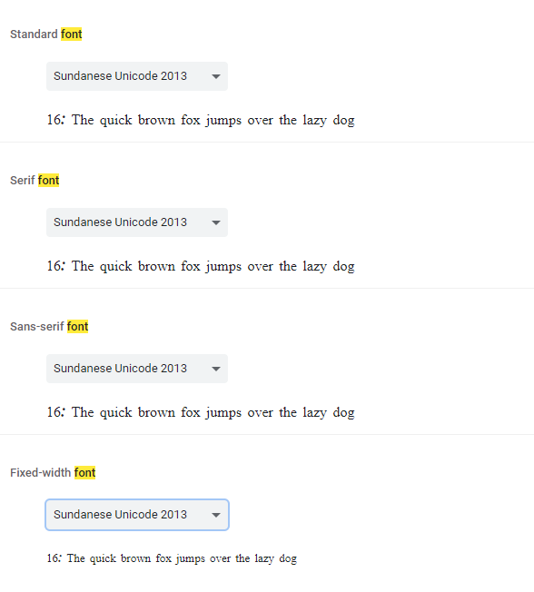 Instal Font Aksara Sunda menggunakan source yang telah di-download.
